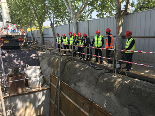 为解决前期工程绿化迁占手续办理困难的问题,项目部多方协调、积极跟进联系业务部门,快速完成手续办理;加强与设计单位、权属单位的联系沟通,协助开展现场图纸勘察、设计方案调整等变更工作;精准测算开挖深度,探坑确定管线位置,提高施工的效率。